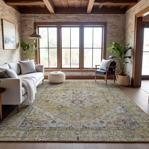 Mayfield Premium Machine Washable Abstract AMF1103 Wheat 9 ft. x 12 ft. Area Rug