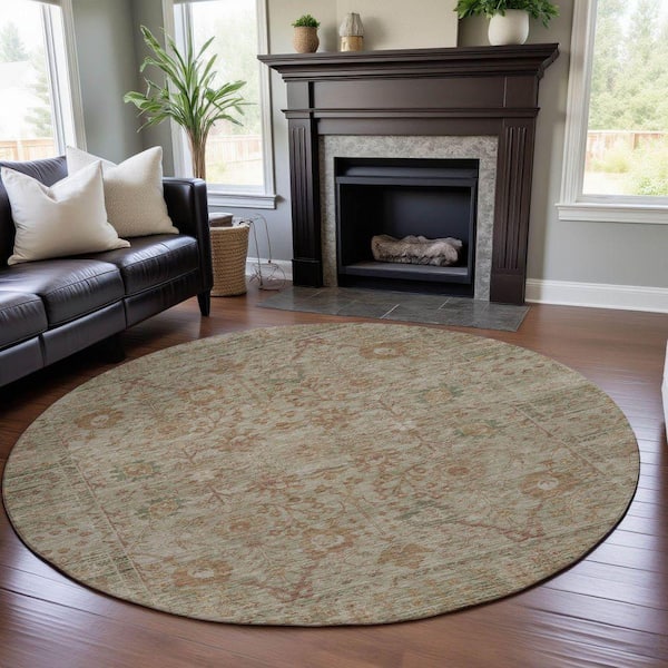 Mayfield Premium Machine Washable Abstract AMF1106 Beige 8 ft. x 8 ft. Round Rug