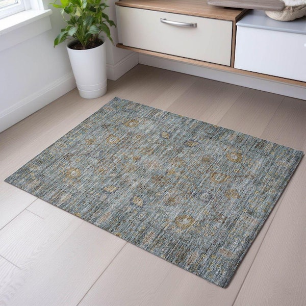 Mayfield Premium Machine Washable Abstract AMF1106 Teal 2 ft. x 3 ft. Area Rug