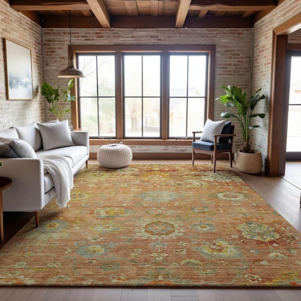 Mayfield Premium Machine Washable Abstract AMF1107 Coral 8 ft. x 10 ft. Area Rug
