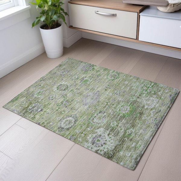 Mayfield Premium Machine Washable Abstract AMF1107 Mint 2 ft. x 3 ft. Area Rug