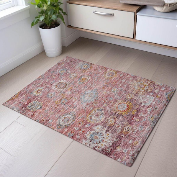 Mayfield Premium Machine Washable Abstract AMF1107 Pink 2 ft. x 3 ft. Area Rug