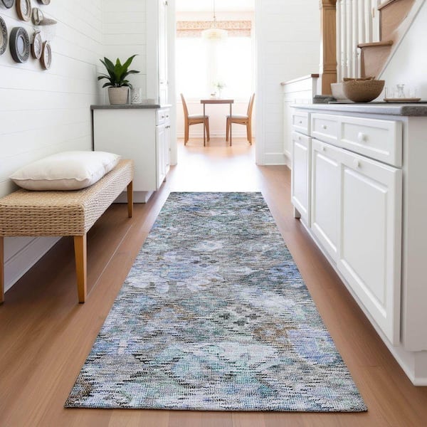 Mayfield Premium Machine Washable Abstract AMF1109 Blue 2 ft. 3 in. x 7 ft. 6 in. Runner Rug