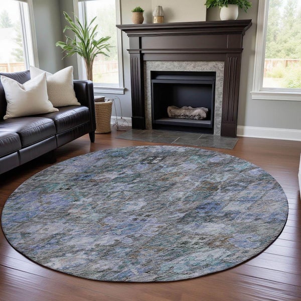 Mayfield Premium Machine Washable Abstract AMF1109 Blue 8 ft. x 8 ft. Round Rug