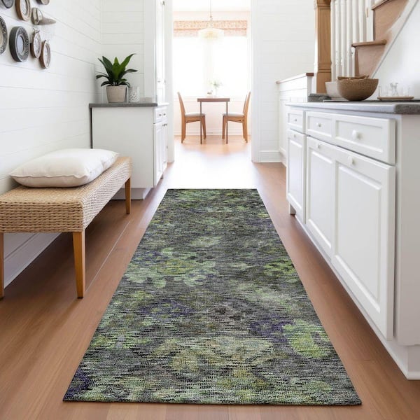 Mayfield Premium Machine Washable Abstract AMF1109 Green 2 ft. 3 in. x 7 ft. 6 in. Runner Rug