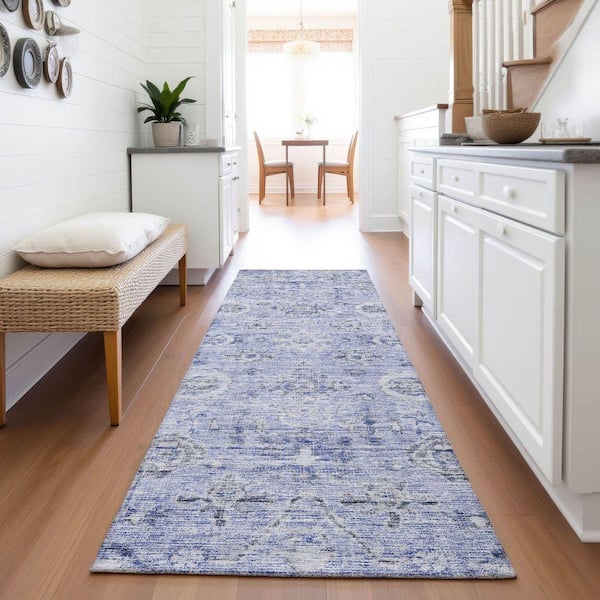 Mayfield Premium Machine Washable Abstract AMF1110 Blue 2 ft. 3 in. x 7 ft. 6 in. Runner Rug