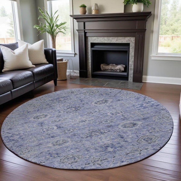 Mayfield Premium Machine Washable Abstract AMF1110 Blue 8 ft. x 8 ft. Round Rug