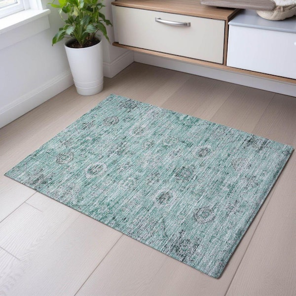 Mayfield Premium Machine Washable Abstract AMF1110 Teal 2 ft. x 3 ft. Area Rug