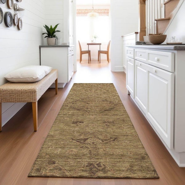 Mayfield Premium Machine Washable Abstract AMF1111 Brown 2 ft. 3 in. x 7 ft. 6 in. Runner Rug