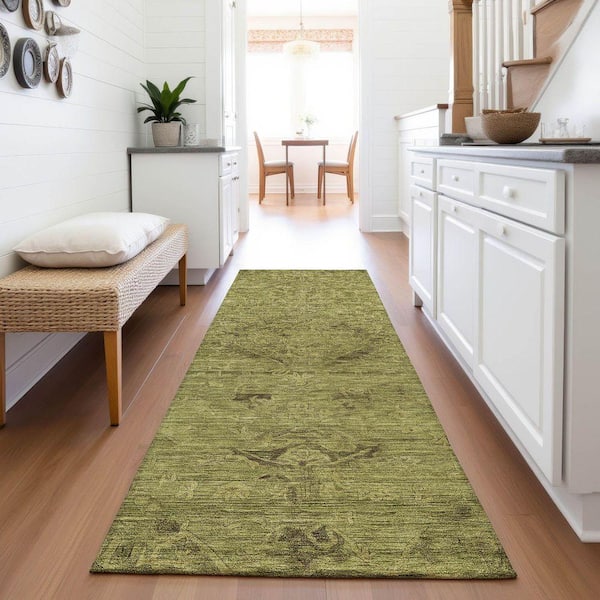Mayfield Premium Machine Washable Abstract AMF1111 Olive 2 ft. 3 in. x 7 ft. 6 in. Runner Rug