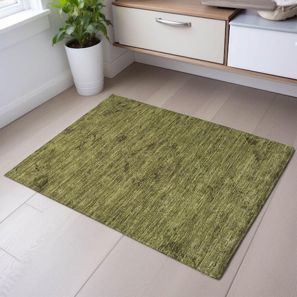 Mayfield Premium Machine Washable Abstract AMF1111 Olive 2 ft. x 3 ft. Area Rug