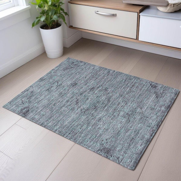 Mayfield Premium Machine Washable Abstract AMF1111 Teal 2 ft. x 3 ft. Area Rug