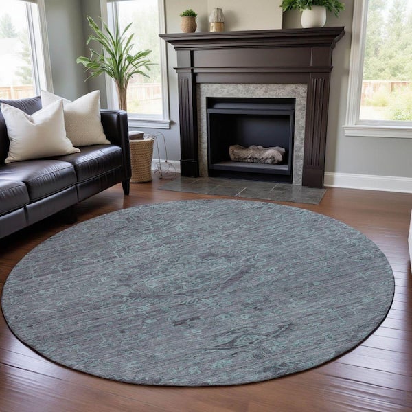 Mayfield Premium Machine Washable Abstract AMF1111 Teal 8 ft. x 8 ft. Round Rug