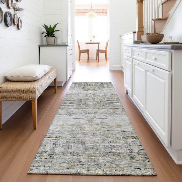 Mayfield Premium Machine Washable Abstract AMF1112 Gray 2 ft. 3 in. x 7 ft. 6 in. Runner Rug