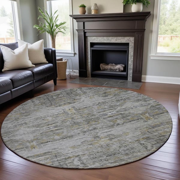 Mayfield Premium Machine Washable Abstract AMF1112 Gray 8 ft. x 8 ft. Round Rug