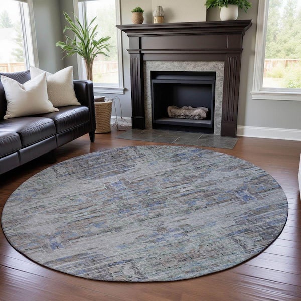 Mayfield Premium Machine Washable Abstract AMF1112 Taupe 8 ft. x 8 ft. Round Rug