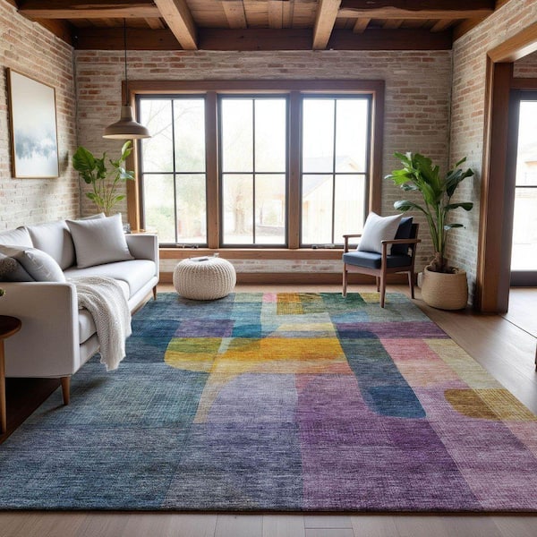Mayfield Premium Machine Washable Abstract AMF1113 Blue 5 ft. x 7 ft. 6 in. Area Rug