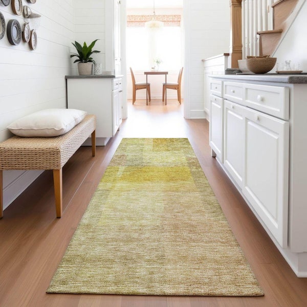 Mayfield Premium Machine Washable Abstract AMF1113 Gold 2 ft. 3 in. x 7 ft. 6 in. Runner Rug