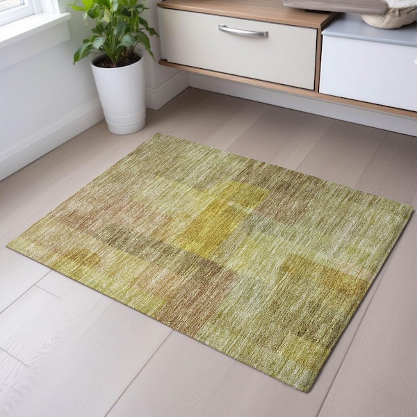 Mayfield Premium Machine Washable Abstract AMF1113 Gold 2 ft. x 3 ft. Area Rug