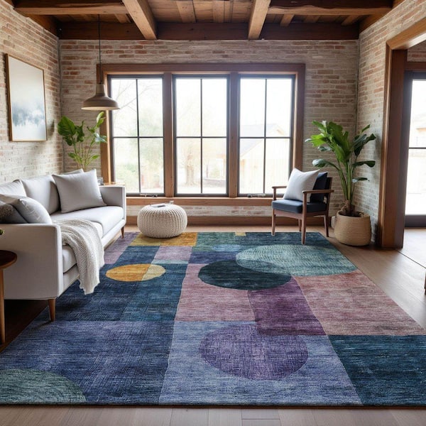 Mayfield Premium Machine Washable Abstract AMF1114 Blue 5 ft. x 7 ft. 6 in. Area Rug