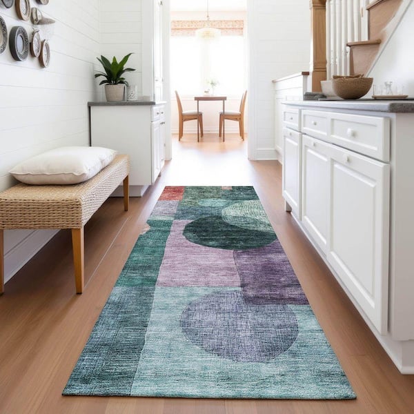 Mayfield Premium Machine Washable Abstract AMF1114 Green 2 ft. 3 in. x 7 ft. 6 in. Runner Rug