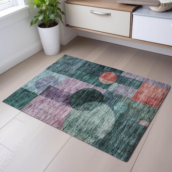 Mayfield Premium Machine Washable Abstract AMF1114 Green 2 ft. x 3 ft. Area Rug