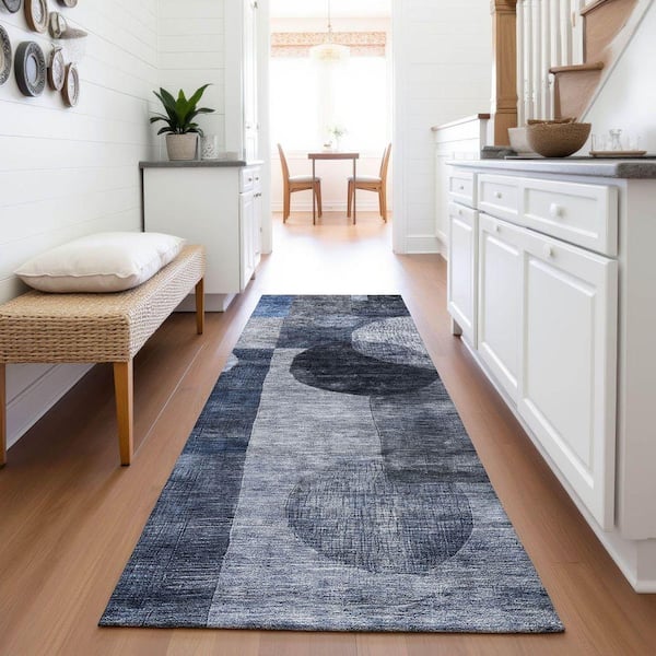 Mayfield Premium Machine Washable Abstract AMF1114 Navy 2 ft. 3 in. x 7 ft. 6 in. Runner Rug