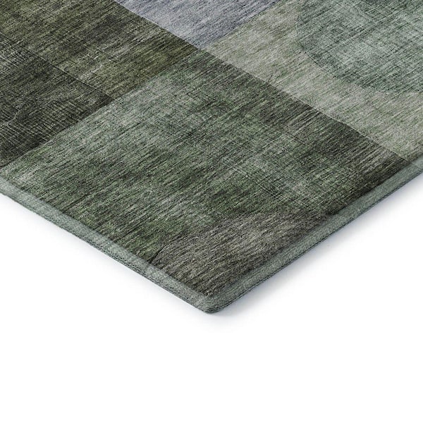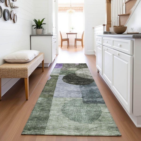 Mayfield Premium Machine Washable Abstract AMF1114 Olive 2 ft. 3 in. x 7 ft. 6 in. Runner Rug