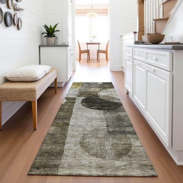 Mayfield Premium Machine Washable Abstract AMF1114 Taupe 2 ft. 3 in. x 7 ft. 6 in. Runner Rug