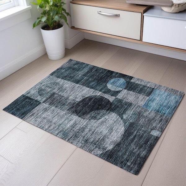 Mayfield Premium Machine Washable Abstract AMF1114 Teal 2 ft. x 3 ft. Area Rug