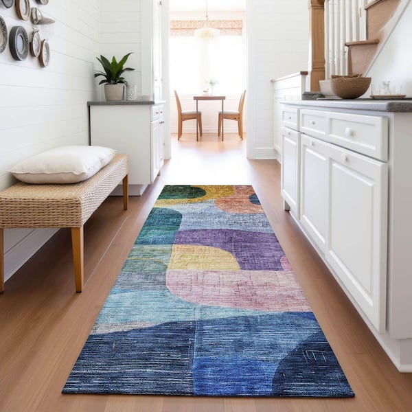 Mayfield Premium Machine Washable Abstract AMF1115 Blue 2 ft. 3 in. x 7 ft. 6 in. Runner Rug