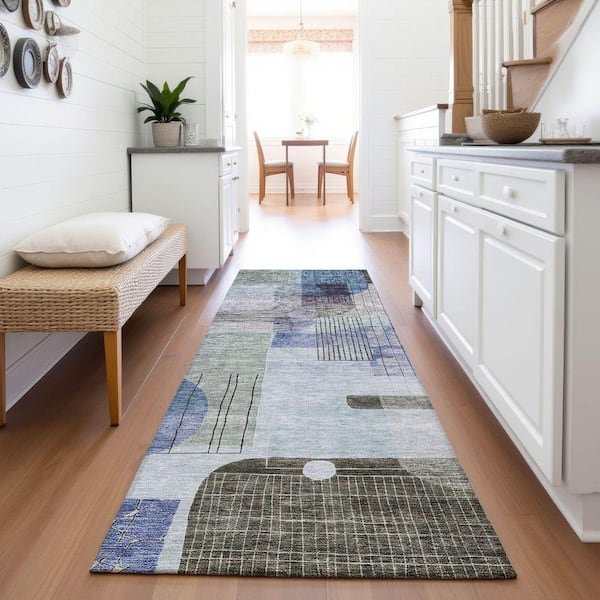 Mayfield Premium Machine Washable Abstract AMF1116 Blue 2 ft. 3 in. x 7 ft. 6 in. Runner Rug