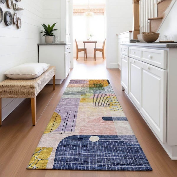Mayfield Premium Machine Washable Abstract AMF1116 Plum 2 ft. 3 in. x 7 ft. 6 in. Runner Rug
