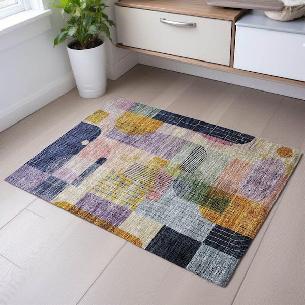 Mayfield Premium Machine Washable Abstract AMF1116 Plum 2 ft. x 3 ft. Area Rug