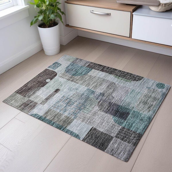 Mayfield Premium Machine Washable Abstract AMF1116 Teal 2 ft. x 3 ft. Area Rug