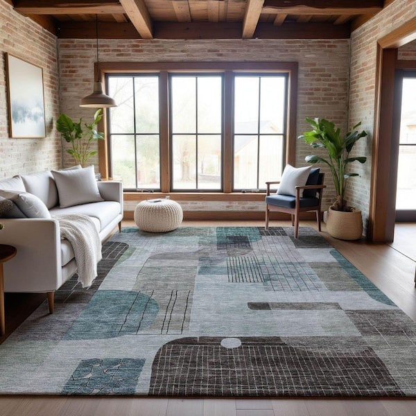 Mayfield Premium Machine Washable Abstract AMF1116 Teal 3 ft. x 5 ft. Area Rug