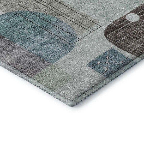 Mayfield Premium Machine Washable Abstract AMF1116 Teal 8 ft. x 10 ft. Area Rug