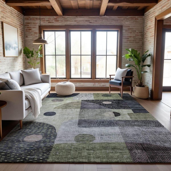 Mayfield Premium Machine Washable Abstract AMF1117 Aloe 5 ft. x 7 ft. 6 in. Area Rug