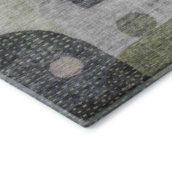 Mayfield Premium Machine Washable Abstract AMF1117 Aloe 8 ft. x 8 ft. Round Rug