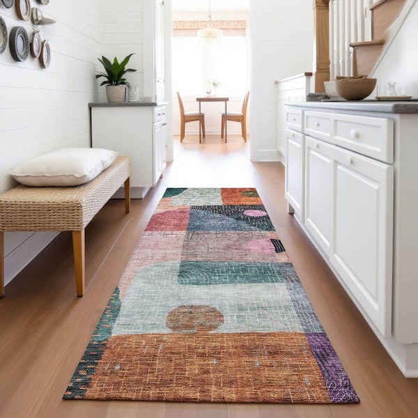 Mayfield Premium Machine Washable Abstract AMF1117 Orange 2 ft. 3 in. x 7 ft. 6 in. Runner Rug