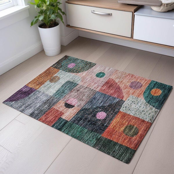 Mayfield Premium Machine Washable Abstract AMF1117 Orange 2 ft. x 3 ft. Area Rug