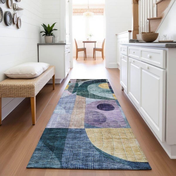 Mayfield Premium Machine Washable Abstract AMF1118 Blue 2 ft. 3 in. x 7 ft. 6 in. Runner Rug