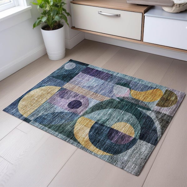 Mayfield Premium Machine Washable Abstract AMF1118 Blue 2 ft. x 3 ft. Area Rug