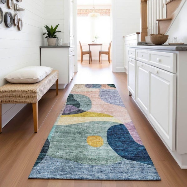 Mayfield Premium Machine Washable Abstract AMF1119 Green 2 ft. 3 in. x 7 ft. 6 in. Runner Rug