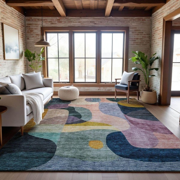 Mayfield Premium Machine Washable Abstract AMF1119 Green 3 ft. x 4 ft. Area Rug