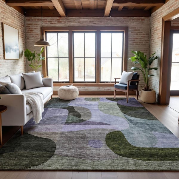 Mayfield Premium Machine Washable Abstract AMF1119 Olive 3 ft. x 4 ft. Area Rug