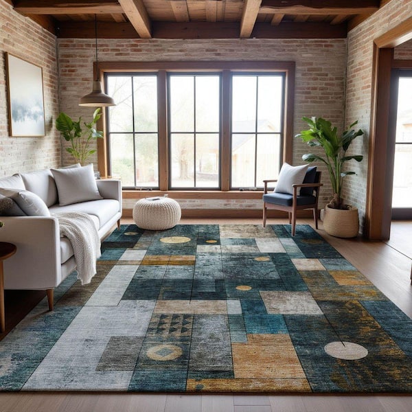 Mayfield Premium Machine Washable Abstract AMF1123 Teal 8 ft. x 10 ft. Area Rug