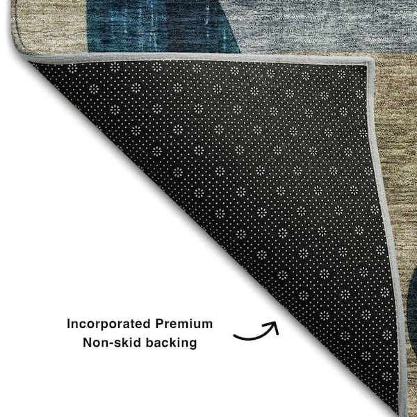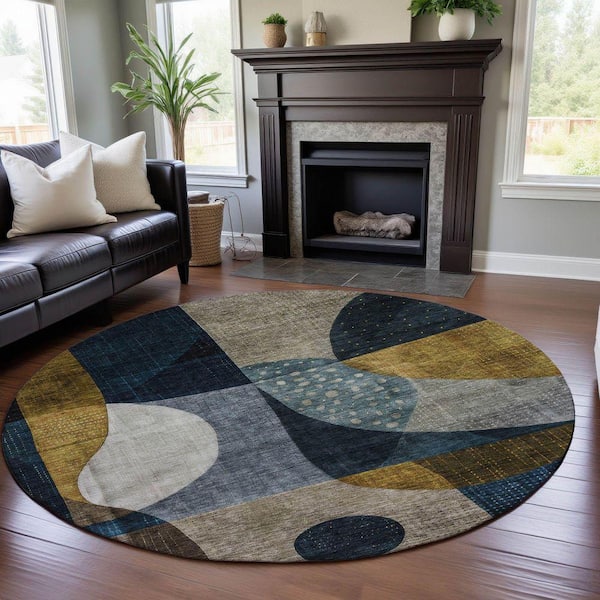 Mayfield Premium Machine Washable Abstract AMF1124 Blue 8 ft. x 8 ft. Round Rug
