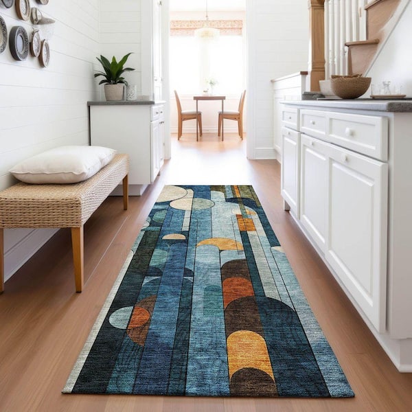 Mayfield Premium Machine Washable Abstract AMF1125 Blue 2 ft. 3 in. x 7 ft. 6 in. Runner Rug