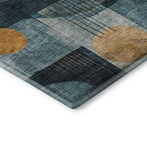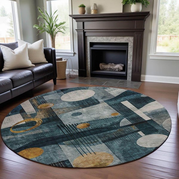 Mayfield Premium Machine Washable Abstract AMF1126 Teal 8 ft. x 8 ft. Round Rug